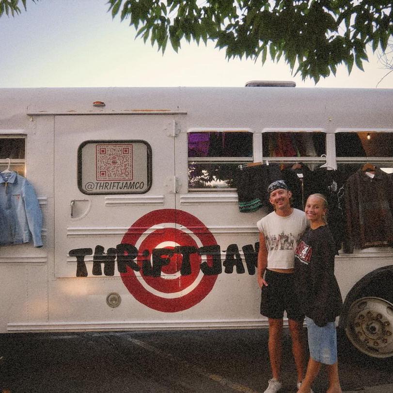 Thriftjam was created by two college students passionate about saving the planet, and looking good while doing it. After two years of juggling school and running a business, we bought an old short school bus to remodel and turn into a storefront. Now, we have the opportunity to travel the area with our business, share our love for vintage clothing, and educate our community about the importance of recycling these textiles.