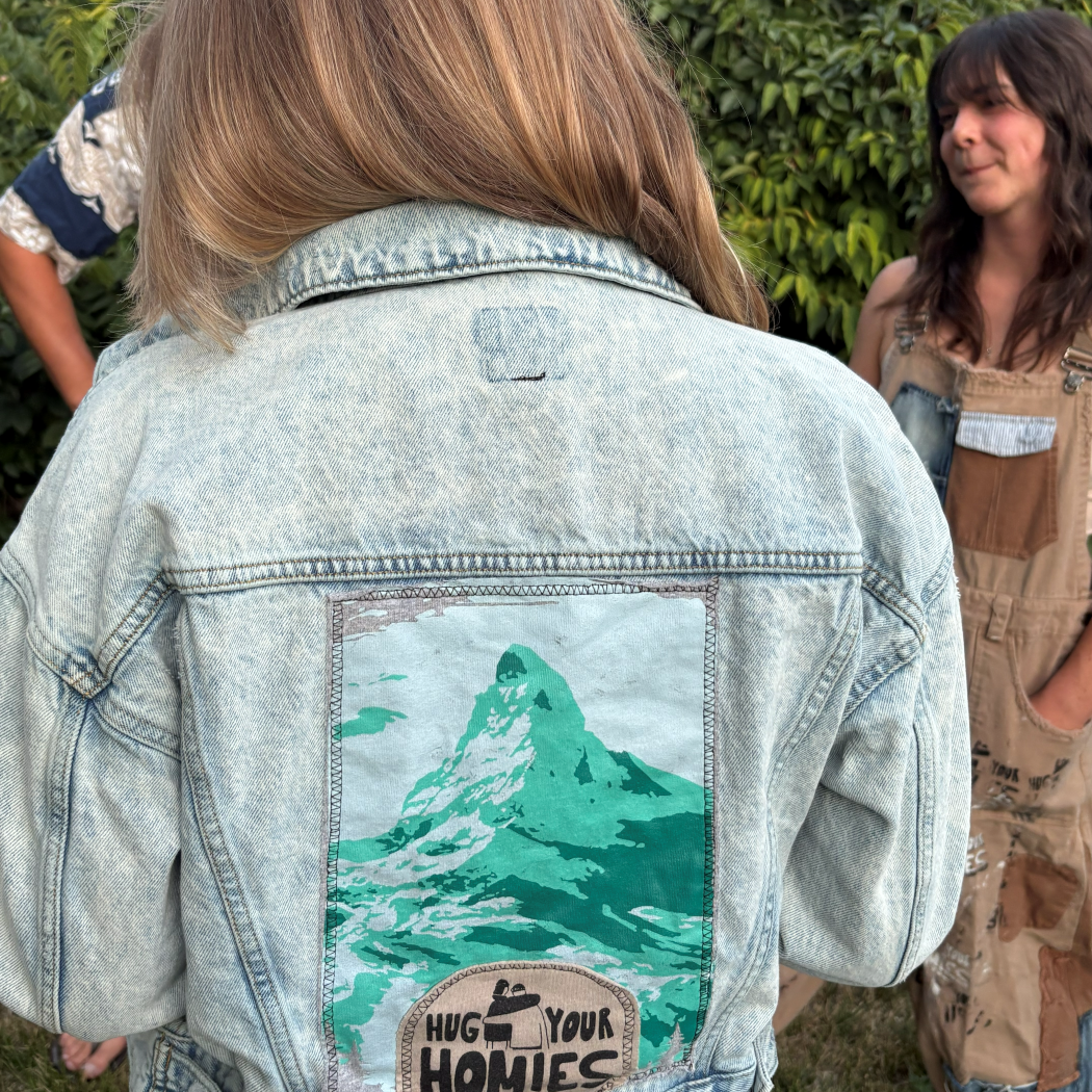 Hug Your Homies (HYH) makes upcycled apparel from thrifted and vintage clothing, predominantly cotton, using a combination of screen printing, cut and sew, bleach work, and tie-dye techniques to create unique apparel, all branded “Hug Your Homies” to sustainably promote mental health and suicide awareness, spread love and stoke, and bring people together. We started making stickers that say “Hug Your Homies And Tell Them You Love Them” in December of 2023 after we lost Jacob Guden to mental health in the Alta community. Since then we have tried to push this message out there as far as we can through upcycled apparel, hosting events, and youtube and instagram content. Our goal is to inspire others to really show up for their homies, and have it be a life motto, and in-turn, to save lives. I source/thrift everything myself, hand pick quality items with intention based on the style, feel (mostly heavyweight cotton for men and lightweight/flowy/corduroy cotton for women), and color pallet (mostly earth tones, blacks, and blues) that I feel matches the overall feel, aesthetic, and vibe of HYH. The types of clothes I try to make the most of are: T-Shirts, Long-sleeve Tees, Baby Tees/Crop Tops, Tank Tops, Button Ups, Denim Shirts/Jackets, Sweatshirts and Hoodies. My personal favorite item to make is denim shirts/jackets. I source landscape graphic tees, cut them out, sew them on the back of the denim jackets/shirts, then with the excess fabric from the tees, I add a screen-printed “Hug Your Homies” patch with people hugging looking out at the landscape. For the majority of the tees/sweatshirts/basic merch, I screen print my designs on them, with mostly eco-friendly water-based ink.