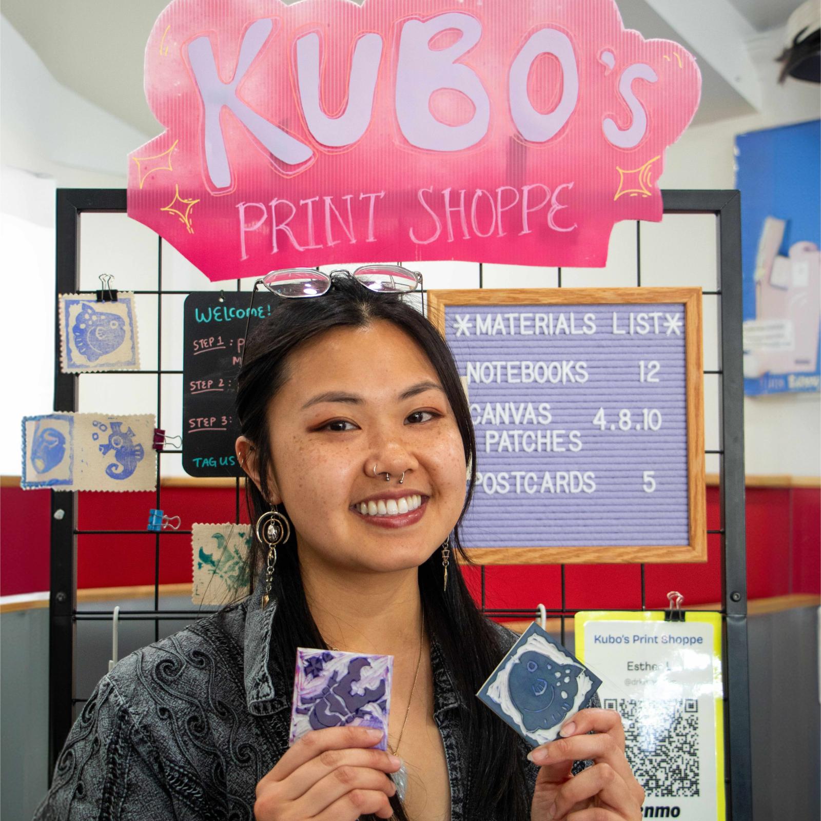 Esther is a block-print artist who makes art interactive. Her booth is a creative playground, allowing visitors to take part in the printing process.