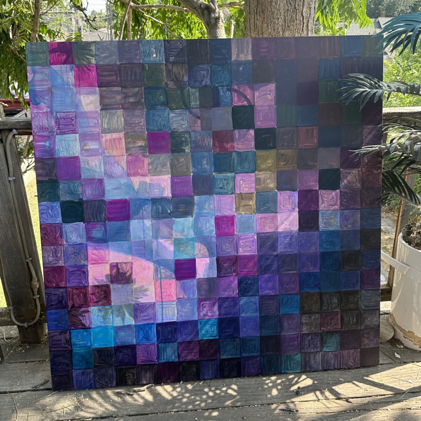 Jenn Dabb works with a range of techniques. She etches objects via pyrography, dots out images with pointillism, and makes vibrant acrylic paintings.