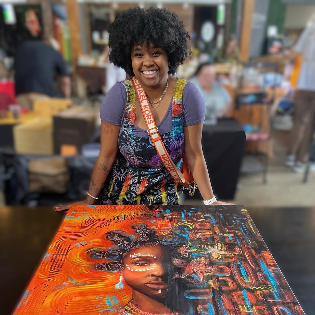Esther creates mixed media works that highlight the depth, resilience, and elegance of African and Black identities.