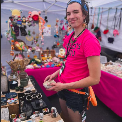 life-longer queer fiber artist Jerusha has been crocheting since 7 years old, creating functional, fun, and sometimes weird crochet items