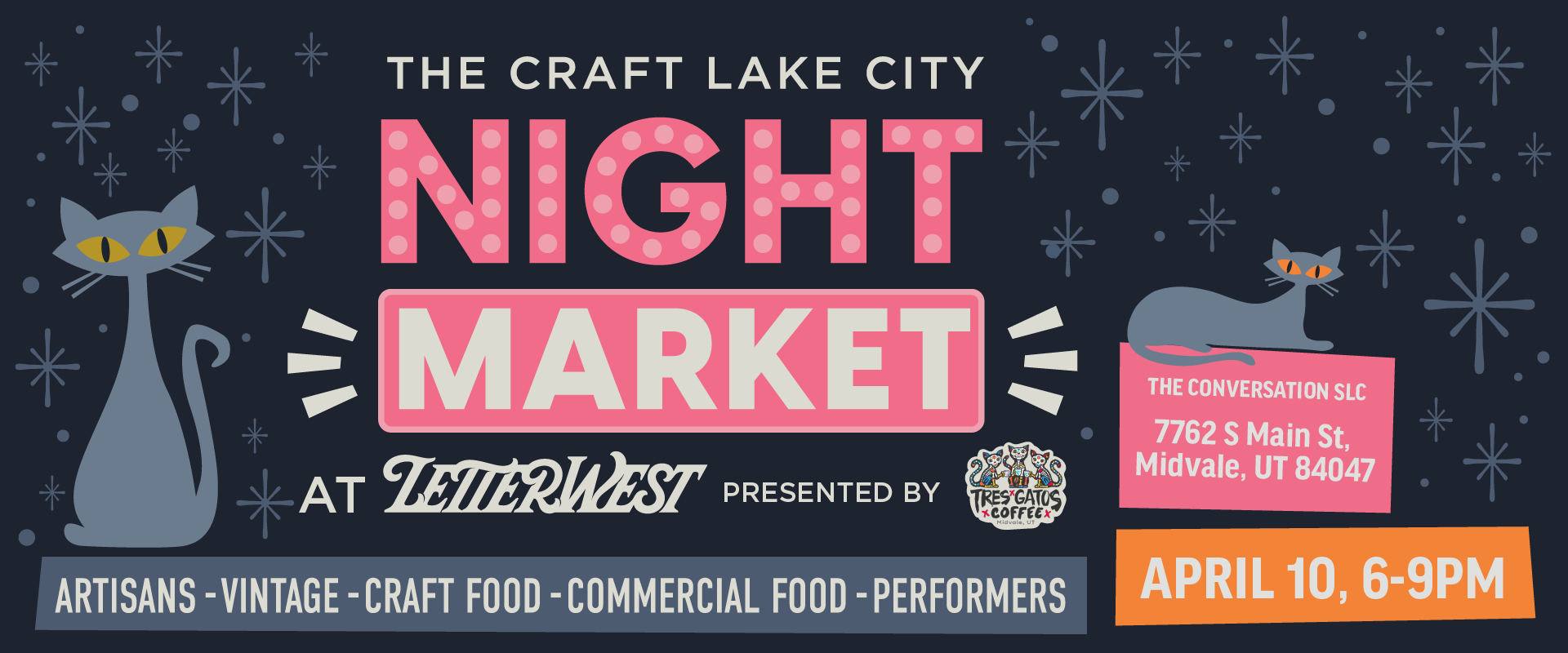 Experience an evening of creativity and community at the Craft Lake City Night Market Presented By Tres Gatos Coffee on April 10, 6-9 p.m. at Conversation SLC in Midvale, Utah.