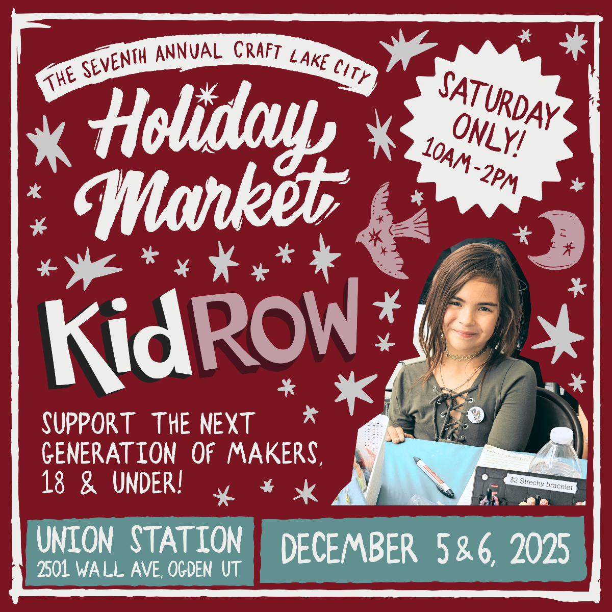 Craft Lake City is excited to debut Kid Row, its youth pop-up market, at the Seventh Annual Craft Lake City Holiday Market. Kid Row will take place on Saturday, December 6, from 10 a.m to 2 p.m. at the Ogden Union Station, giving creative entrepreneurs ages 18 and younger the opportunity to exhibit, promote and sell their handcrafted wares.