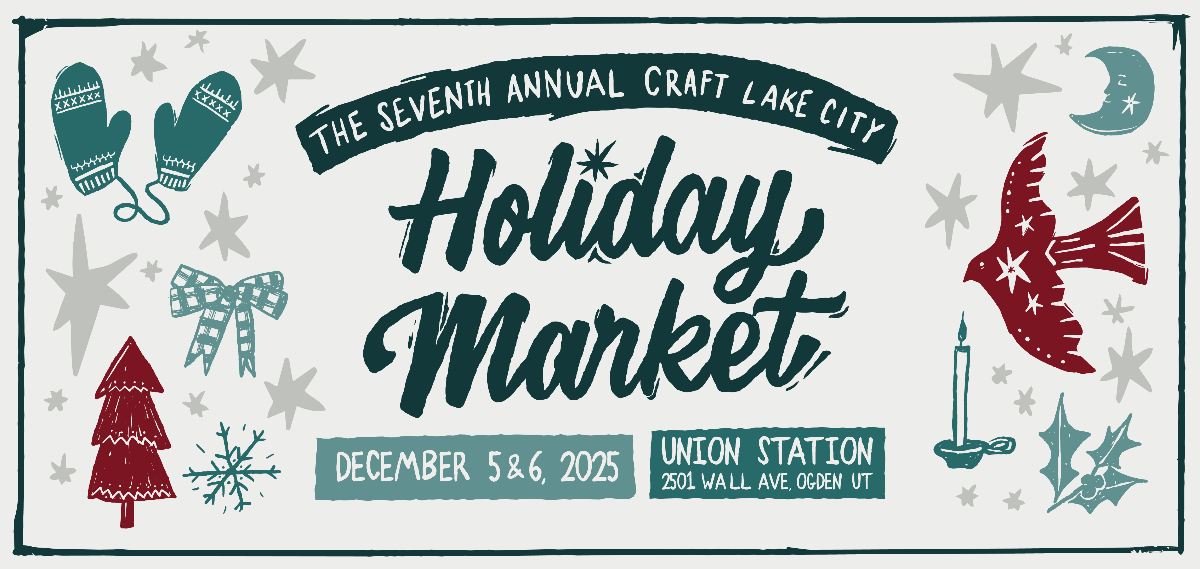 The Seventh Annual Craft Lake City Holiday Market is supported in part by Stephen G. & Susan E. Denkers Family Foundation, The Ogdenite, PBS Utah, 90.1 KUER, Ogden Union Station, KRCL 90.9 FM, Visit Ogden, Drømme, Libation LLC, Ogden Beer Company, Ogden’s Own Distillery, UTOG, and SCHEELS.