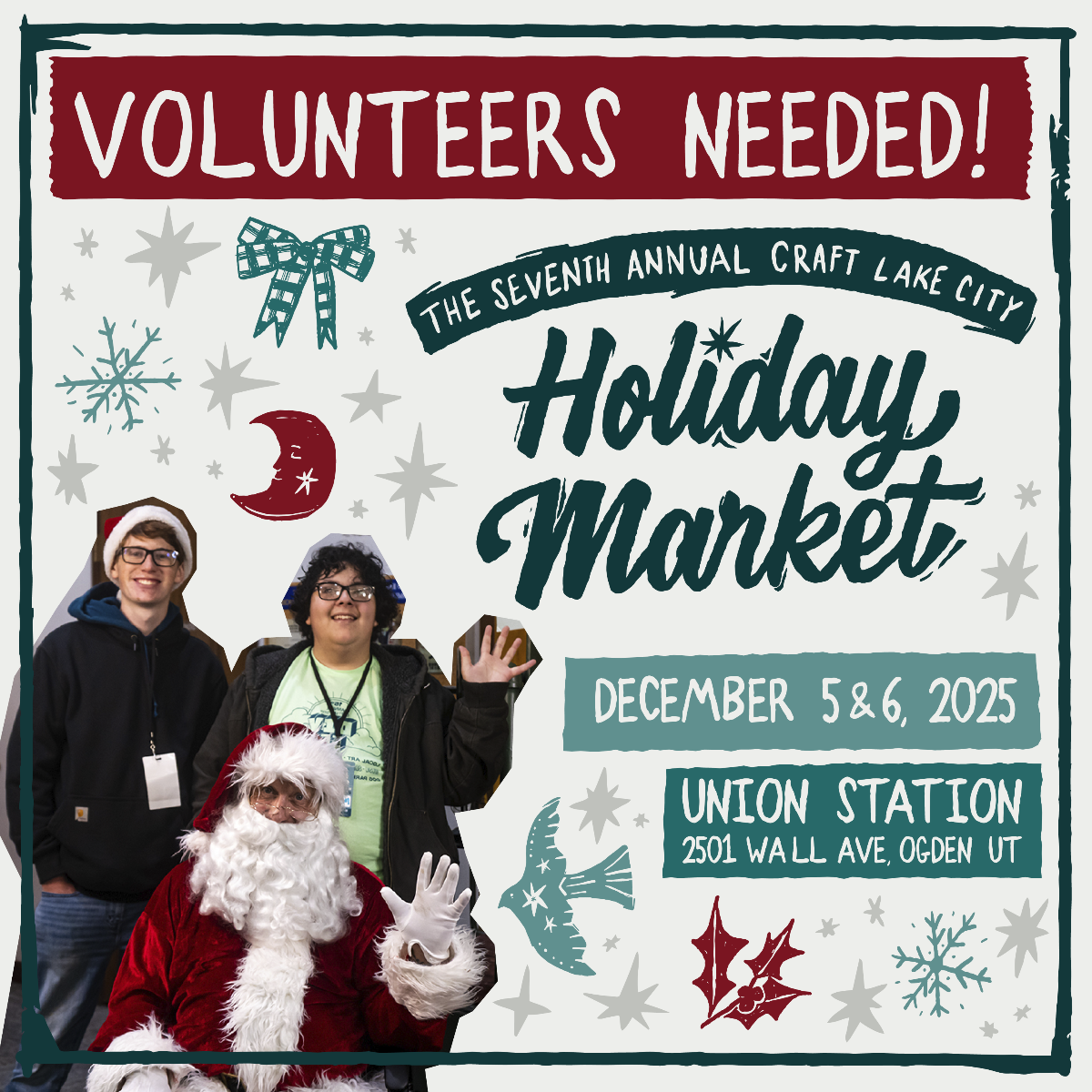 Craft Lake City is calling for volunteers to help bring the Seventh Annual Craft Lake City Holiday Market to life Dec. 5-6 at the historic Union Station in Ogden, Utah. Volunteer shifts are available from Thu., Dec. 4, 2025 – Sat., Dec. 6, 2025, offering community members the opportunity to support local creatives, gain hands-on event experience and celebrate the season in a festive, welcoming environment.