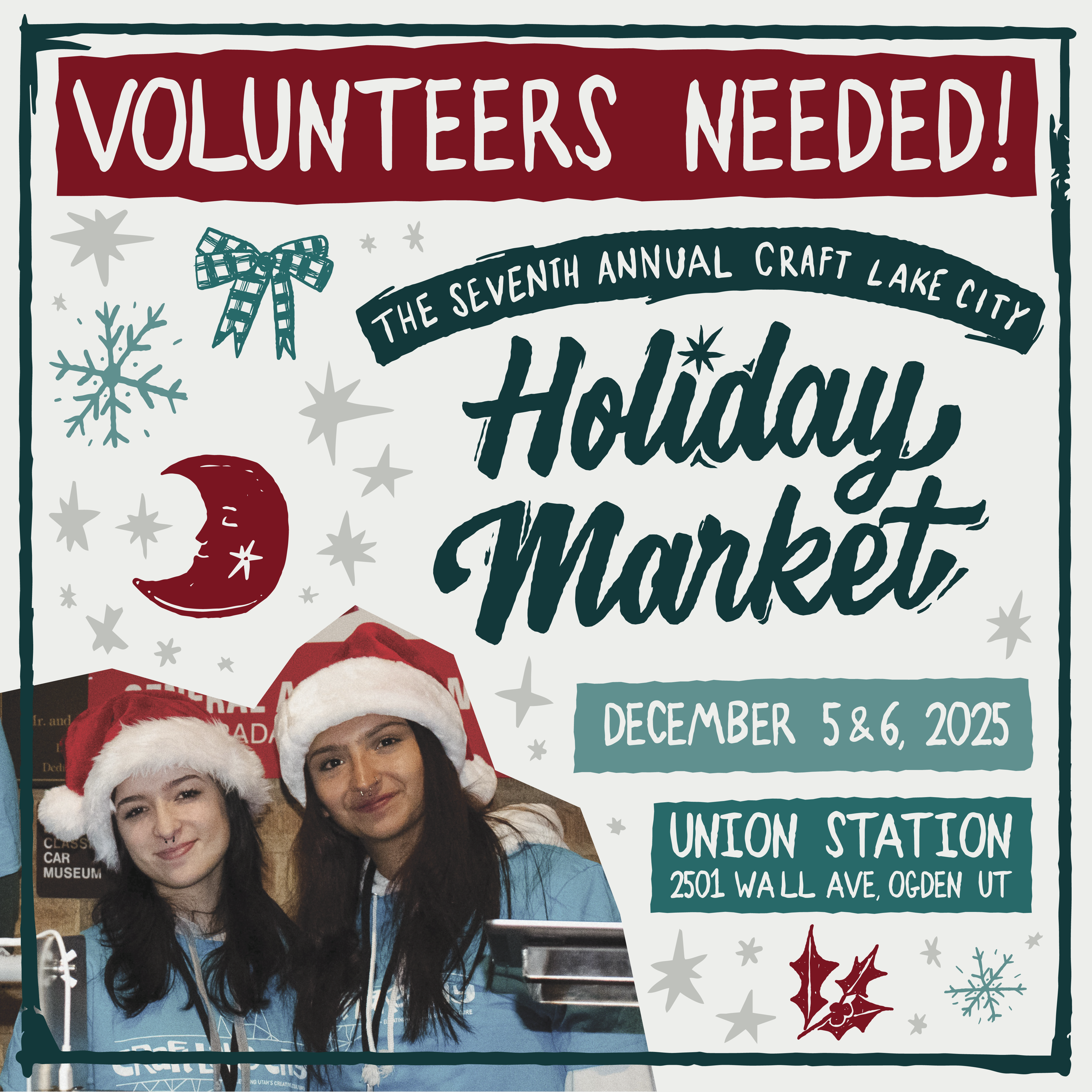 We’d love to receive a volunteer application from you! To join our volunteer team, please complete this short volunteer application Volunteer with Craft Lake City. We will be launching our online volunteer sign up for Holiday Market on January 30, 2026.